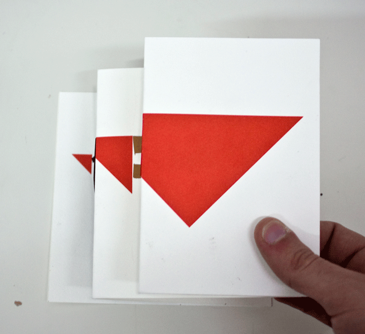 El taller de 3 hores consistia en crear, a partir d'una imatge geomètrica com pot ser un triangle, una història o sorpresa en desplegar-lo i fragmentar-lo. L'única tecnica permesa era el collage.